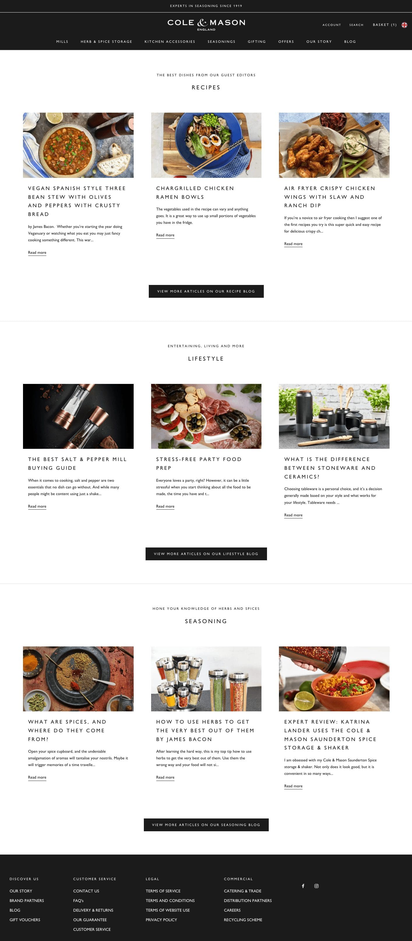 Working as a Freelance Shopify developer, I had the opportunity to work with Cole & Mason, a kitchenware company that specialises in high-end salt & pepper mills and accessories. The company was looking to create a new e-commerce website that would better align their brand with the luxury market and attract a higher-end customer base.